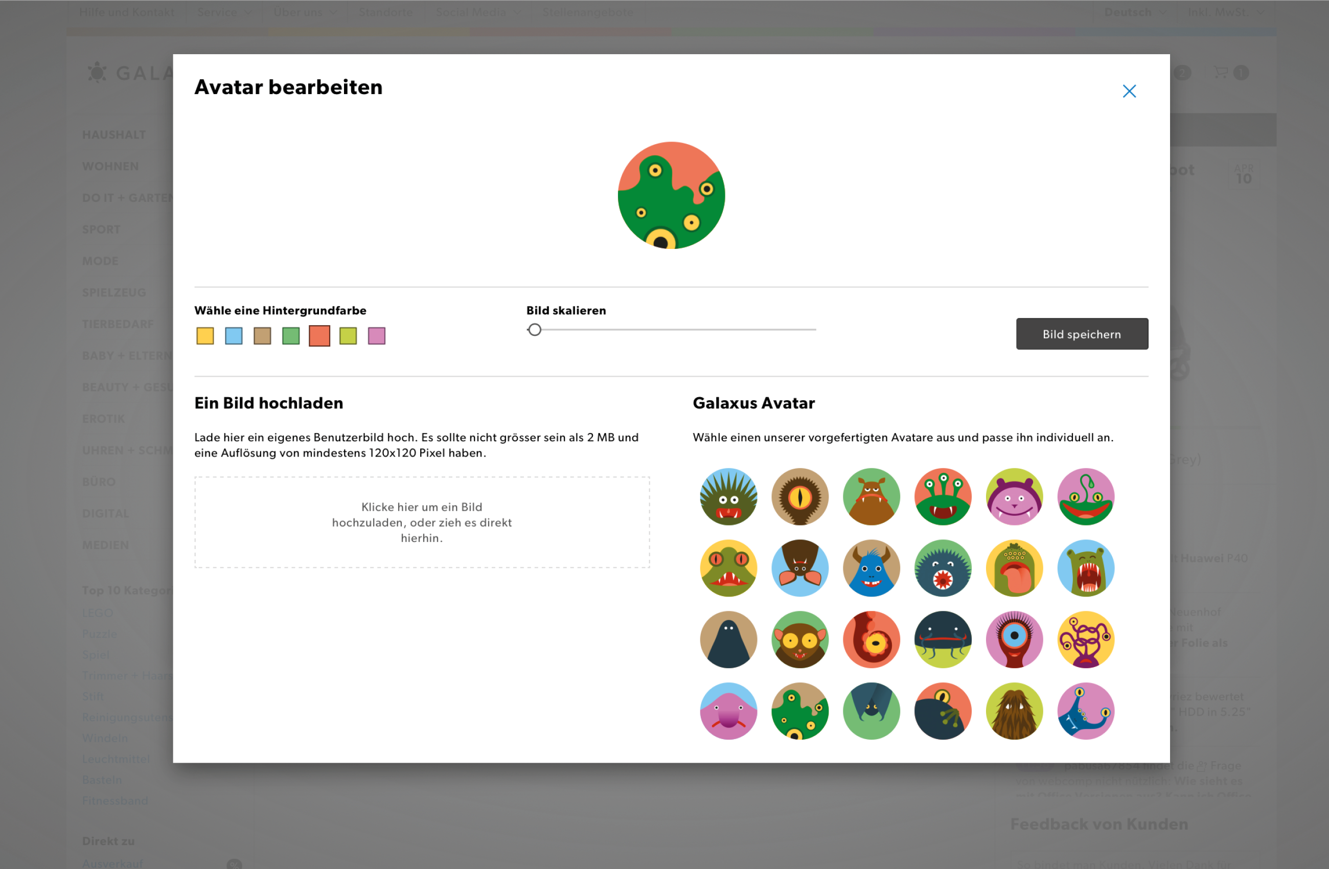 Illustrationen für das Benutzerkonto des digitec und des Galaxus Onlineshops. Die Benutzer können einen Avatar auswählen und die Hintergrundfarbe anpassen.