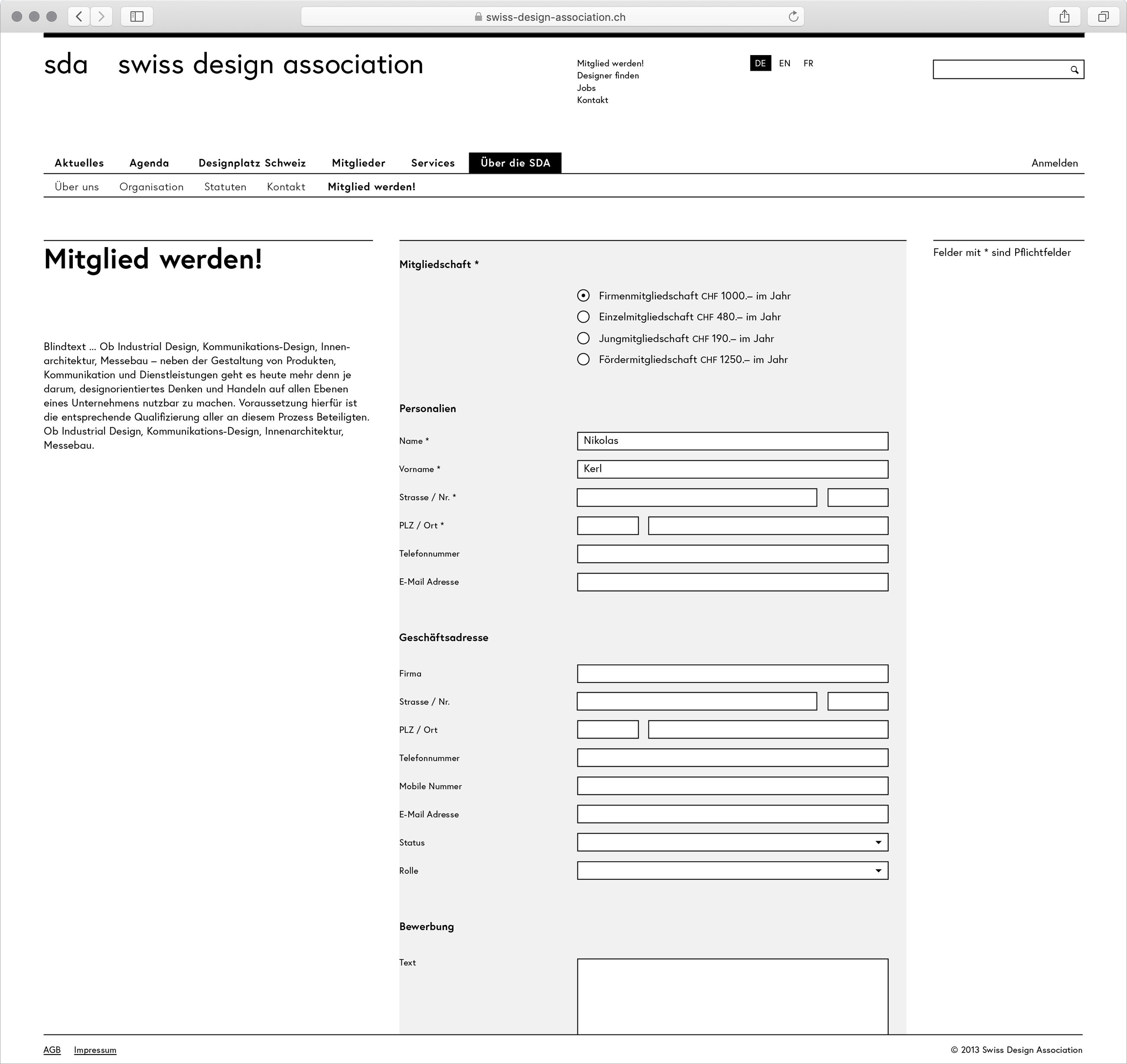 Portalwebsite für die Swiss Design Association.